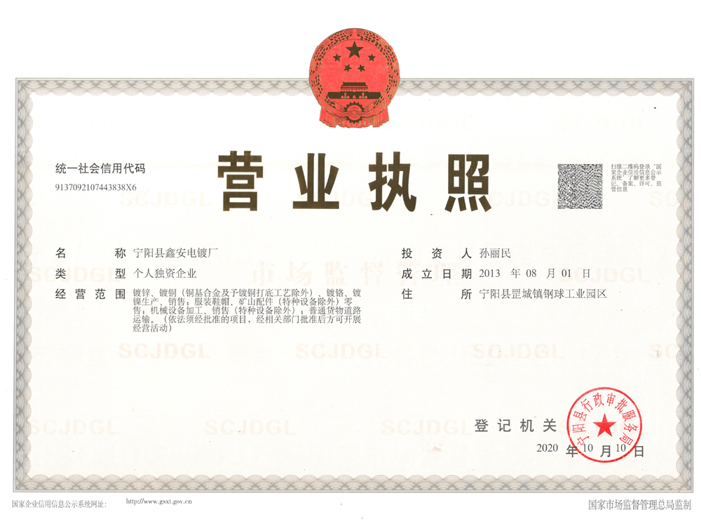 宁阳县鑫安电镀厂,成立于2013年8月,位于山东宁阳钢球工业园区,占地面积约17亩。多年来,始终秉承“生产经营与环境保护并重”的企业宗旨,坚持“客户至上,不断优化管理体系,强化环境保护,严把质量管控,持续提高产品质量”,达到了“生产周期短、质量稳定可靠和零排放”经营管理目标,赢得了广大客户的关注和认可。 目前,拥有多套先进的全自动龙门表面处理生产线和一支具有专业技术、丰富生产经验的人才梯队,配有理化试验室和测量室,配备了电解膜厚计、原子吸收分光光度计等先进检测设备,可为钢、铝、铁和不锈钢等多种材质、小自钢球大到上吨的配件进行镀铜、镀镍、镀锌、镀铬等表面处理,镀件可呈现蓝白、五彩、银白、军绿等多种颜色。 ...